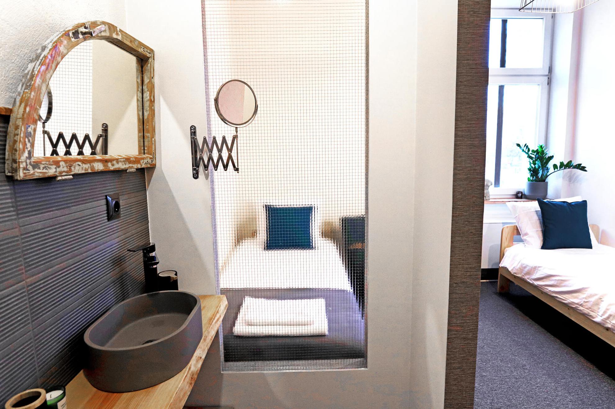 Jeśli lubisz miejsca z duszą, na pewno spodoba Ci się u nas! Kamienica powstała w latach 1899-1904 i jest położona w samym centrum Raciborza przy placu Wolności 5. Naturalny kamień, drzwi, framugi i starą cegłę połączyliśmy z nowoczesnymi, ale prostymi rozwiązaniami, które nadały wnętrzom lekkości. Odrestaurowane, zabytkowe meble łączą się tu z dodatkami w stylu DIY, jak lampy, kinkiety, garderoby ze starych drzwi czy stoliki, których podstawę stanowią przedwojenne maszyny do szycia.